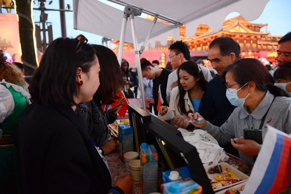 首場活動(dòng)開場節(jié)目是由俄羅斯留學(xué)生達(dá)妮婭、芮娜和我校音樂系學(xué)生張澤宇、朱啟龍共同演唱的俄羅斯傳統(tǒng)歌曲《喀秋莎》《莫斯科郊外的晚上》《朋友》,優(yōu)美的聲音和熟悉的旋律,給大家?guī)砹嗣篮玫囊饩场kS后,俄羅斯同學(xué)們表演了俄羅斯民族舞蹈《卡林卡》、俄羅斯民謠彈唱《布谷鳥》,中外學(xué)生合作表演了中文歌曲《美麗的神話》和街舞《少年》。期間還精心組織了俄羅斯知識(shí)有獎(jiǎng)問答及學(xué)俄語等互動(dòng)節(jié)目,現(xiàn)場設(shè)置俄羅斯紅場及套娃道具打卡,吸引了眾多市民游客的熱情參與。