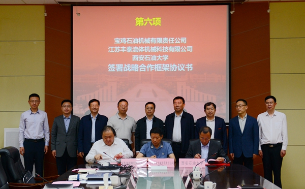 會(huì)上,寶雞石油機(jī)械有限責(zé)任公司副總經(jīng)理張斌、江蘇豐泰流體機(jī)械科技有限公司董事長(zhǎng)侯曉東、我校副校長(zhǎng)張榮軍分別代表校企政三方簽署了戰(zhàn)略合作協(xié)議書(shū),我校材料科學(xué)與工程學(xué)院院長(zhǎng)張驍勇、江蘇蓮源機(jī)械制造有限公司副總經(jīng)理陳玉洪分別代表校企雙方簽署了技術(shù)服務(wù)合同。政企校三方科技部門(mén)、我校相關(guān)院系負(fù)責(zé)人就三方今后在石油機(jī)械領(lǐng)域科研合作、人才培養(yǎng)等方面的合作進(jìn)行了深入探討。