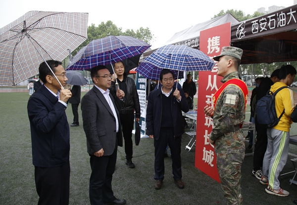 423日上午,陜西省2021屆普通高校能源化工類畢業(yè)生聯(lián)盟招聘活動(dòng)在我校雁塔校區(qū)舉辦。陜西省教育廳副廳長高嶺、學(xué)工部部長唐澍、二級(jí)調(diào)研員胡偉安、西北大學(xué)副校長奚家米、西安理工大學(xué)黨委副書記馬寧、西安建筑科技大學(xué)黨委副書記張志昌、陜西科技大學(xué)黨委副書記王道安、西安科技大學(xué)黨委副書記陳春林、西安工業(yè)大學(xué)黨委副書記梁云鶴、陜西國防職業(yè)技術(shù)學(xué)院副院長張永軍、陜西交通職業(yè)技術(shù)學(xué)院副院長董梅、陜西能源職業(yè)技術(shù)學(xué)院副院長趙新法等10所院校負(fù)責(zé)畢業(yè)生就業(yè)工作的校領(lǐng)導(dǎo)及27所聯(lián)盟高校就業(yè)部門負(fù)責(zé)同志參加了招聘活動(dòng)。我校校長李天太、黨委副書記張木全程陪同。