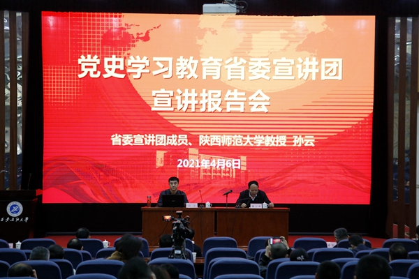 孫云教授為我校師生作了題為《學(xué)習(xí)百年黨史,牢記初心使命》的宣講報(bào)告。他從“深入學(xué)習(xí)領(lǐng)會(huì)習(xí)近平總書記關(guān)于黨的歷史的重要論述,充分認(rèn)識(shí)開展黨史學(xué)習(xí)教育的重大意義”“認(rèn)真研讀黨史基本著作,全面了解中國(guó)共產(chǎn)黨百年奮斗的光輝歷程和歷史性貢獻(xiàn)”“深刻把握開展黨史學(xué)習(xí)教育的重點(diǎn)”“開展黨史學(xué)習(xí)教育,要學(xué)懂弄通做實(shí)習(xí)近平新時(shí)代中國(guó)特色社會(huì)主義思想”四個(gè)方面,介紹了開展黨史學(xué)習(xí)教育的重大意義、重點(diǎn)內(nèi)容和工作要求。他通過列舉大量豐富翔實(shí)的史料和事例,深刻闡明中國(guó)共產(chǎn)黨踐行初心使命的百年奮斗歷程和歷史性貢獻(xiàn);強(qiáng)調(diào)要聯(lián)系陜西實(shí)際,利用我省豐富的紅色文化資源,推動(dòng)學(xué)習(xí)教育扎實(shí)深入開展,引導(dǎo)黨員干部做到學(xué)史明理、學(xué)史增信、學(xué)史崇德、學(xué)史力行。