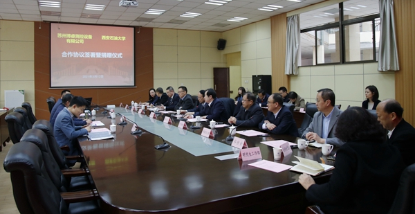 312日下午,學(xué)校與蘇州博睿測控設(shè)備有限公司合作協(xié)議簽署暨捐贈儀式在雁塔校區(qū)第一會議室舉行。學(xué)校黨委書記賽云秀、校長李天太,蘇州博睿測控設(shè)備有限公司董事長鄭勇、總經(jīng)理李偉華、副總經(jīng)理華樂出席儀式。儀式由校黨委副書記雷西合主持。