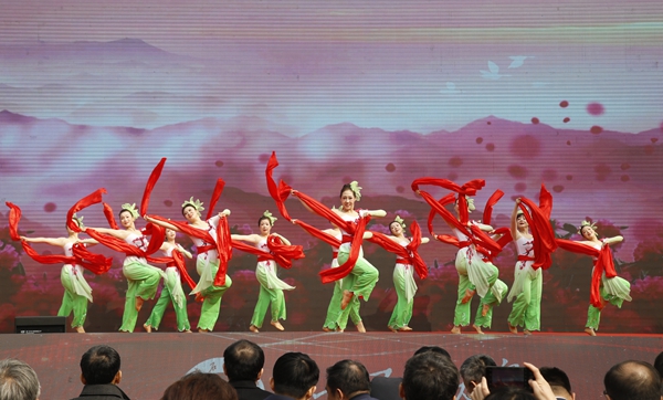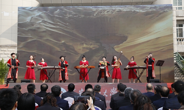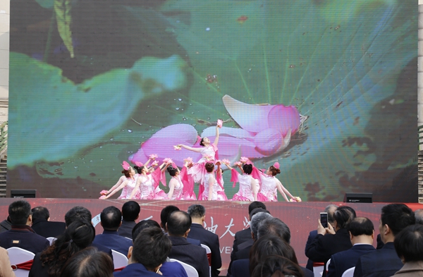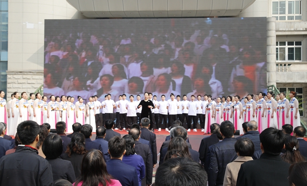 隨后,師生進行了精彩的文藝表演。校團委、大學生藝術團表演了古典舞《荷風盛世》、街舞《舞動青春》;音樂系師生表演了歌曲聯(lián)唱、器樂合奏《阿拉木汗》;國際教育學院的國際學生帶來了《土庫曼斯坦民族舞蹈》;校工會、教職工舞蹈協(xié)會表演了民族舞《山丹丹開花紅艷艷》;教授教師合唱團、音樂系啟航男聲合唱團演唱了《回娘家》。最后,70周年校慶啟動暨一號公告發(fā)布儀式在校歌《輝煌明天》中圓滿結束。