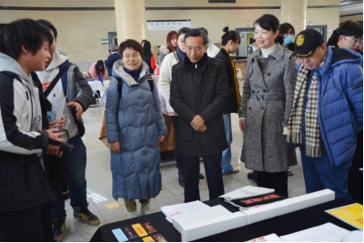 1222日上午,人文學(xué)院2018級(jí)視覺(jué)傳達(dá)設(shè)計(jì)專業(yè)《包裝設(shè)計(jì)》課程創(chuàng)新、創(chuàng)業(yè)實(shí)踐作品展“國(guó)潮來(lái)襲/弄潮兒文創(chuàng)集市”的開(kāi)幕式在西安石油大學(xué)鄠邑校區(qū)圖書(shū)館二樓大廳舉行。校黨委副書(shū)記張木出席,學(xué)生工作部(處)、創(chuàng)新創(chuàng)業(yè)中心、教務(wù)處、圖書(shū)館負(fù)責(zé)人,人文學(xué)院2018級(jí)視覺(jué)傳達(dá)設(shè)計(jì)專業(yè)學(xué)生參加了開(kāi)幕式。