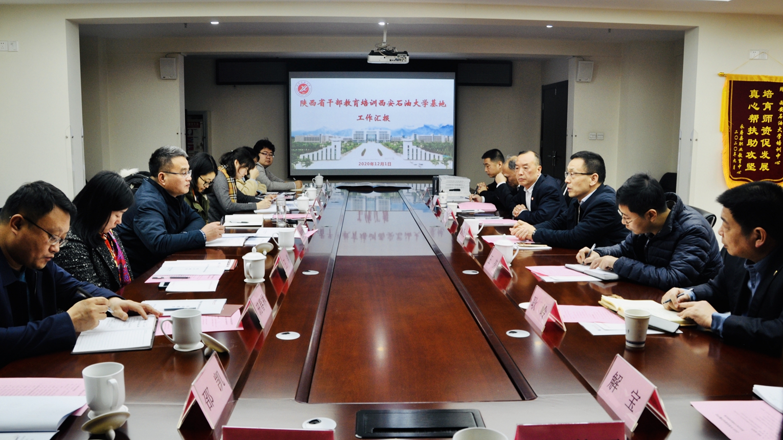在反饋會上,張均頌組長指出,一是我校黨政領(lǐng)導(dǎo)高度重視基地工作,率先垂范親自為學(xué)員授課,基地發(fā)展呈現(xiàn)出良好態(tài)勢。二是堅持開放辦學(xué)、廣聘名師,能協(xié)調(diào)共享全省高校優(yōu)質(zhì)師資資源,省內(nèi)省外接力教學(xué),授課教師與教學(xué)方式受到學(xué)員的高度贊許。三是硬件設(shè)施完備、服務(wù)保障有力,專題開發(fā)與課程更新高度契合當前干部綜合能力提升需要。同時,他希望我校基地能圍繞干部教育培訓(xùn)指導(dǎo)方針“干什么,學(xué)什么;缺什么,補什么”,加強培訓(xùn)前調(diào)研;進一步加大對外宣傳力度、凝練特色,推動內(nèi)涵式發(fā)展;緊密圍繞黨的十九屆五中全會精神與陜西省委十三屆八次全會精神,精心籌劃好明年的培訓(xùn)工作。