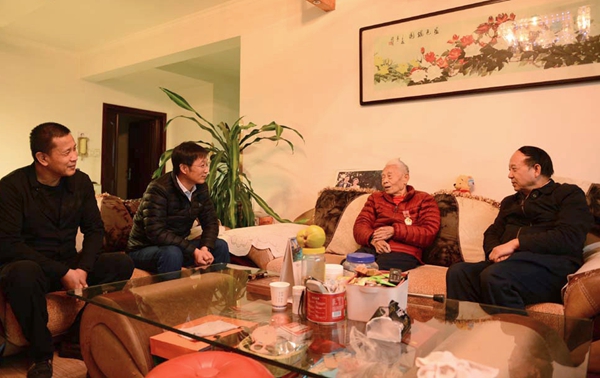 賽書記一行分別來到三位抗美援朝志愿軍老戰(zhàn)士董玉田、鄭承蘭、王世達家中,轉達黨中央的關懷和全校師生的祝福,并為他們佩戴無上光榮的“中國人民志愿軍抗美援朝出國作戰(zhàn)70周年”紀念章。每到一處,賽書記親切詢問他們的身體健康狀況、家庭生活情況,傾聽他們講述當年抗美援朝的戰(zhàn)斗故事,對老戰(zhàn)士在抗美援朝戰(zhàn)爭中敢于斗爭不怕犧牲的精神致以最崇高的敬意,并祝愿他們生活幸福、健康長壽。