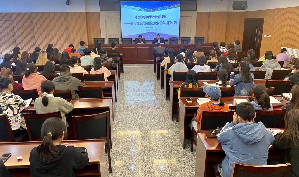 10月23日下午,校領導樊曉民總會計師在鄠邑校區(qū)圖書館第一會議室以“如何快樂充實度過大學四年校園生活”為主題,為外國語學院師生上了一堂生動活潑、精彩紛呈的專題思想政治教育課。學院全體學生工作干部、2019級和2020級主要學生干部聆聽了報告。報告會由外國語學院黨委書記蔡強主持。