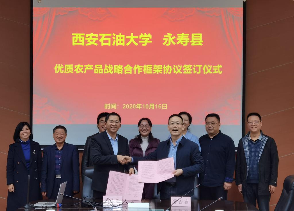 2020年10月17日是我國第七個扶貧日,第28個“國際消除貧困日”。為發(fā)揮產(chǎn)銷對接在產(chǎn)業(yè)扶貧中的重要作用,促進(jìn)貧困地區(qū)特色優(yōu)質(zhì)農(nóng)產(chǎn)品銷售,加快貧困群眾脫貧增收步伐,我校與永壽縣政府《優(yōu)質(zhì)農(nóng)產(chǎn)品戰(zhàn)略合作框架協(xié)議》簽訂儀式于10月16日在雁塔校區(qū)會議中心舉行。我校黨委副書記雷西合、永壽縣政府副縣長辛本勝以及學(xué)校工會、永壽縣供銷社相關(guān)負(fù)責(zé)人參加簽約儀式。簽約儀式由校工會主席袁玎主持。