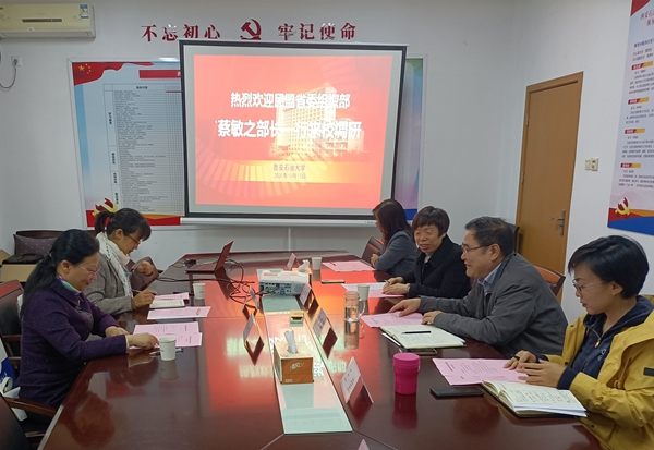 1013日下午,民盟陜西省委委員、組織部部長蔡敏之一行來我校調(diào)研走訪,與我校黨委統(tǒng)戰(zhàn)部部長、機(jī)關(guān)黨委書記吳復(fù)雷,民盟西安石油大學(xué)支部主委石冬蓮教授等進(jìn)行了交流座談。