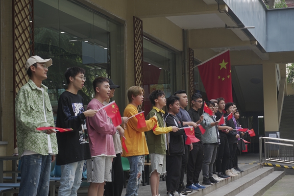 中午12點(diǎn)10分,音樂系100余名師生匯聚到雁塔校區(qū)學(xué)生餐廳門外。隨著《歌唱祖國》音樂旋律響起,大家一邊揮舞著手中的五星紅旗,一邊唱起《今天是你的生日》《輝煌明天》《我愛你中國》三首歌曲。三首歌曲慷慨激昂、振奮人心,表達(dá)了我校師生對祖國的崇敬和熱愛之情,展示了我校師生積極向上的精神風(fēng)貌。師生們通過“快閃”這樣的新穎形式,唱響了熱愛黨、熱愛祖國、熱愛學(xué)校、熱愛生活的主旋律,令人耳目一新,贏得了在場師生的陣陣掌聲。