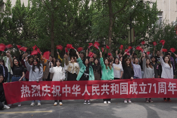 為慶祝新中國成立71周年,930日中午,音樂系師生在雁塔校區(qū)學(xué)生餐廳門前舉辦“紅歌快閃”活動,吸引了校園中眾多過往師生駐足觀看,齊聲高唱祖國贊歌。