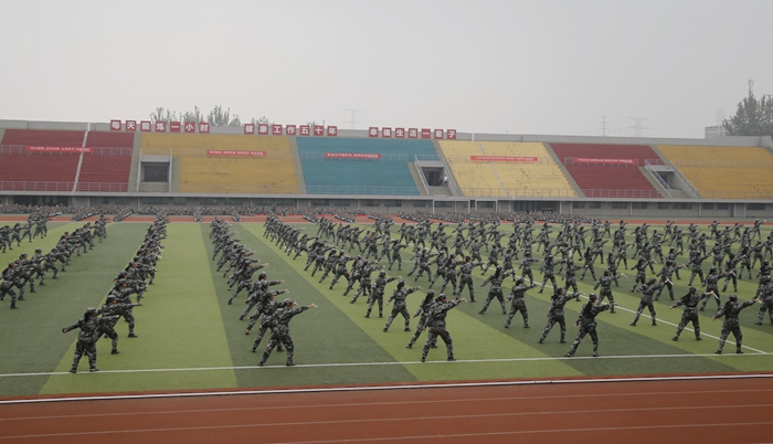 軍訓(xùn)總結(jié)表彰大會在全場師生齊唱校歌的激揚旋律中圓滿結(jié)束。