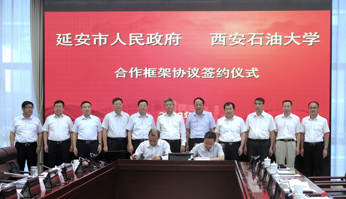 延安市委辦公室、市政府辦公室、市委組織部、高新區(qū)黨工委、市發(fā)改委、市科技局、市工信局、市人社局負(fù)責(zé)人;延長油田股份有限公司、長慶油田公司第一采油廠、延安嘉盛石油機(jī)械制造有限公司負(fù)責(zé)人;我校黨政辦公室、宣傳部、學(xué)生工作部、科技處、研究生院、合作發(fā)展處、繼續(xù)教育學(xué)院負(fù)責(zé)人參加簽約儀式。