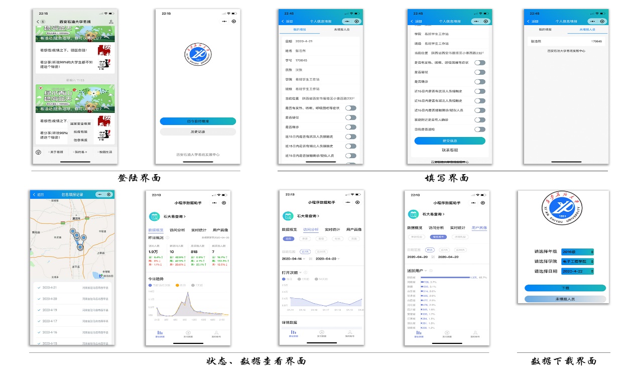 校易班發(fā)展中心組織研發(fā)團隊僅用兩天時間,于2月2日正式研發(fā)完成了滿足學校需求的學生健康信息登記小程序,并于2月7日調(diào)試完畢正式上線使用,3月20日和4月27日又分別進行了功能升級。信息登記小程序有效滿足了學生信息填報和學校信息收集分析的需求,極大提升了院(系)工作開展的效率,減輕了一線輔導員的工作負擔。截至目前,我校自主開發(fā)小程序日活躍度均保持在兩萬人次以上,為我校日后利用網(wǎng)絡平臺開展思政教育提供了流量支撐。