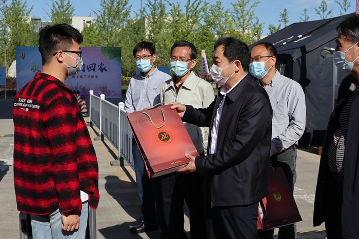 上午8點,校長李天太、校黨委副書記張木、副校長蘇文甫及相關(guān)部門負責人在鄠邑校區(qū)東大門迎接返校同學歸來。李天太校長為率先返校的9名同學送上健康禮包,詳細了解大家的假期生活、線上學習、畢業(yè)設計(論文)進展、就業(yè)考研等情況,并提醒大家返校后繼續(xù)注意科學防護、理性應對,以最好的狀態(tài)迎接校園生活的到來。