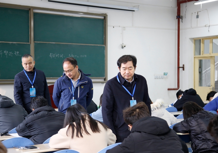 1月7日上午,校長李天太帶領相關職能部門負責人深入期末考試考場進行巡視,對學生遵守考風考紀情況、監(jiān)考教師履職情況、考場環(huán)境等進行巡視檢查,全面了解期末考試組織管理和考風建設情況。