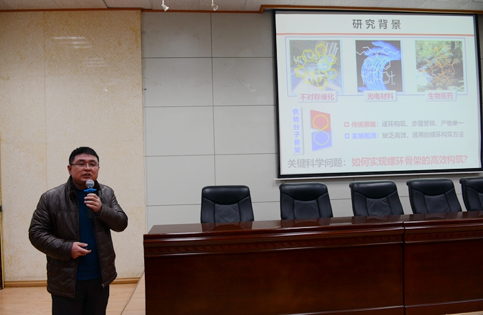 成立儀式結(jié)束后,與會專家就《抽油機減速器半流體潤滑劑產(chǎn)品標準》進行了審定。同時會議還邀請西北大學(xué)化學(xué)與材料學(xué)院院長、國家杰出青年基金獲得者欒新軍教授作了題為“螺環(huán)構(gòu)筑的新策略與新方法”的報告,我校師生代表120余人現(xiàn)場聆聽。