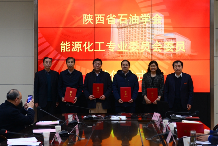 成立儀式上由陜西省石油學(xué)會路利軍秘書長宣布能源化工專業(yè)委員會成立,并宣讀了能源化工專業(yè)委員會的委員名單。我校校長、陜西省石油學(xué)會副理事長李天太為能源化工專業(yè)委員會各委員頒發(fā)了聘書。