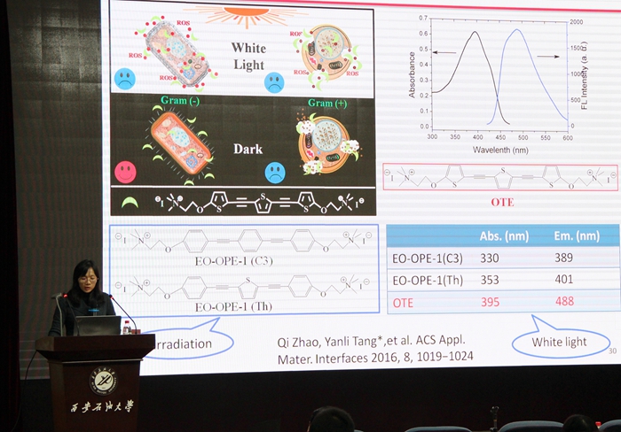 論壇的第一階段由宋海洋教授和張智平教授主持。西安交通大學丁向東教授作了題為“機器學習輔助新材料研發(fā)與多尺度計算”的特邀報告;國家杰出青年科學基金獲得者、國家百千萬人才工程入選者、西北大學吳彪教授作了題為“陰離子配位化學”的特邀報告;國家優(yōu)秀青年科學基金獲得者、陜西省中青年科技創(chuàng)新領(lǐng)軍人才、陜西師范大學唐艷麗教授作了題為“功能化共軛聚合物探針及生物醫(yī)學應用”的特邀報告。