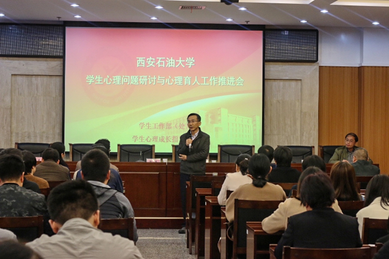 10月29日下午,學(xué)校在鄠邑校區(qū)圖書館第一會(huì)議室召開學(xué)生心理問題研討及心理育人工作推進(jìn)會(huì),校黨委副書記張木、副校長蘇文甫出席,鄠邑校區(qū)管理辦公室、研工部、保衛(wèi)處、校醫(yī)院、后勤管理處負(fù)責(zé)人,各院(系)主管學(xué)生工作負(fù)責(zé)人、全體一線輔導(dǎo)員、樓管代表、保安代表等100余人參加了會(huì)議。