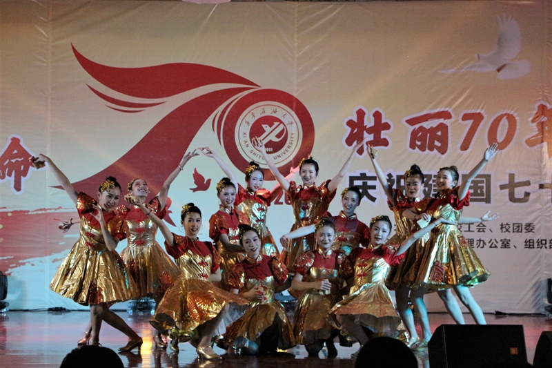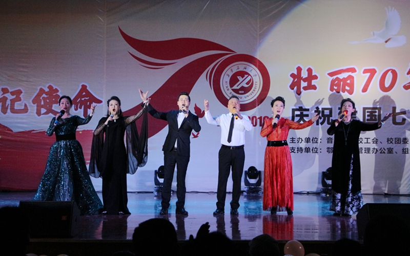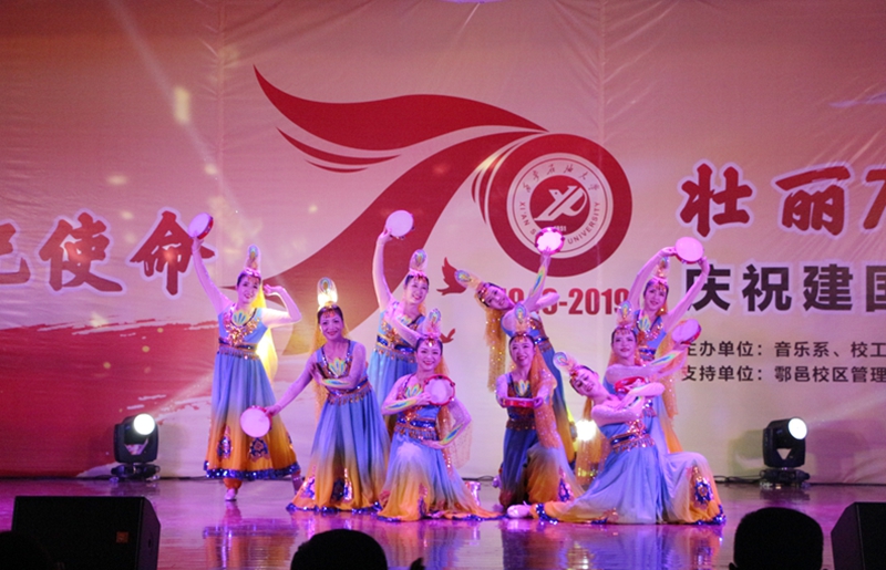 為深入開展“不忘初心、牢記使命”主題教育,10月26日晚,由音樂系、校工會、校團委主辦,鄠邑校區(qū)管理辦公室、組織部、宣傳部、學(xué)生工作部支持的“不忘初心、牢記使命,壯麗70年、奮進新時代”慶祝新中國成立七十周年文藝展演在鄠邑校區(qū)騰輝大學(xué)生活動中心舉行。校黨委副書記雷西合、副校長楊戰(zhàn)社、副校長程永清出席活動。相關(guān)部門負責(zé)人及鄠邑校區(qū)600余名學(xué)生觀看了晚會。