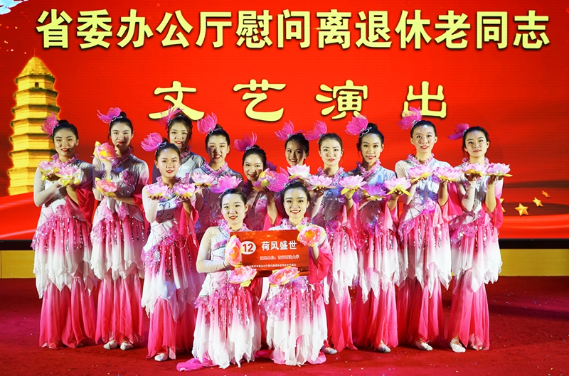 10月27日,省委辦公廳舉辦慰問離退休老同志文藝演出活動,我校團(tuán)委選送的大學(xué)生舞蹈作品《荷風(fēng)盛世》應(yīng)邀參加了演出。