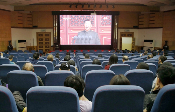 習近平主席的講話句句鏗鏘,直抵人心,“沒有任何力量能夠撼動我們偉大祖國的地位,沒有任何力量能夠阻擋中國人民和中華民族的前進步伐”,“中國的昨天已經(jīng)寫在人類的史冊上,中國的今天正在億萬人民手中創(chuàng)造,中國的明天必將更加美好。”“不忘初心、牢記使命,繼續(xù)把我們的人民共和國鞏固好、發(fā)展好,繼續(xù)為實現(xiàn)‘兩個一百年'奮斗目標、實現(xiàn)中華民族偉大復(fù)興的中國夢而努力奮斗!”等講話在師生中引起熱議。