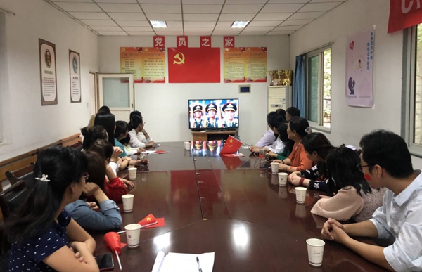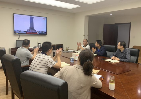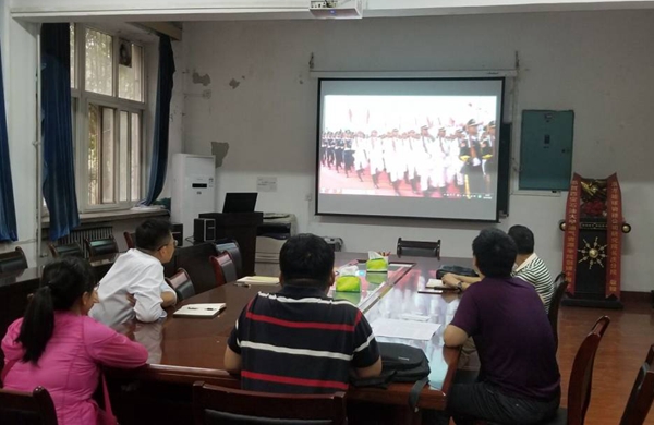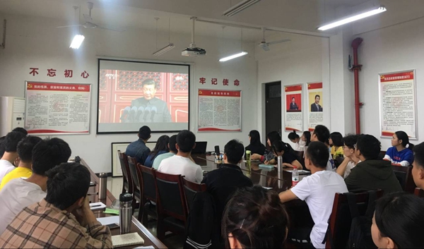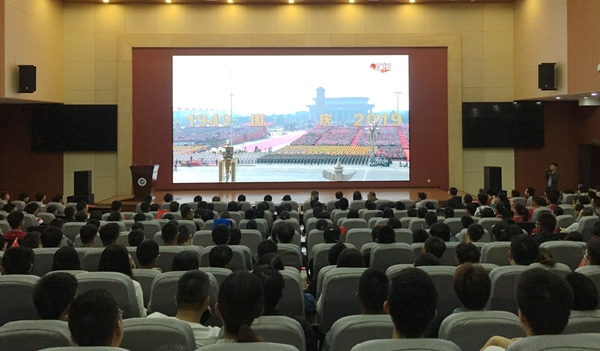參會師生早早來到會場,在會前觀看了慶祝新中國成立70周年的文獻紀錄片《我們走在大路上》第一集《新中國誕生》,隨后集中收看了慶祝中華人民共和國成立70周年大會,認真聆聽了習近平主席在慶祝中華人民共和國成立70周年大會上的講話,滿懷自豪的觀看了閱兵式和群眾游行活動。