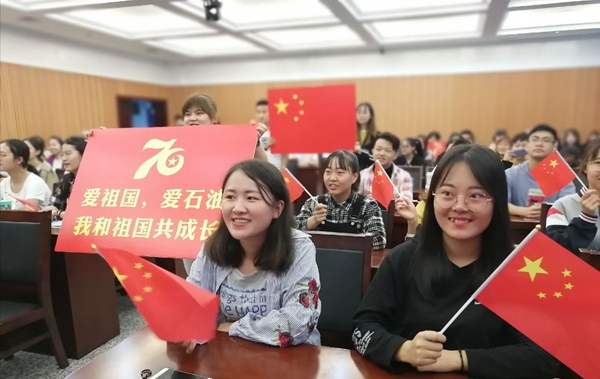 學校將深入學習習近平主席在慶祝中華人民共和國成立70周年大會上的講話精神,大力弘揚愛國主義精神,激發(fā)廣大師生的愛黨、愛國、愛校之情,持續(xù)深入開展“不忘初心、牢記使命”主題教育,落實好立德樹人根本任務(wù)、積極推進學?!半p一流”建設(shè),加快建設(shè)特色鮮明的高水平教學研究型大學步伐,為實現(xiàn)中華民族偉大復(fù)興中國夢作出新的貢獻。