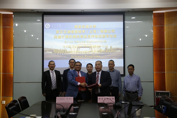 9月29日下午,我校與印度安艾艾迪信息技術有限公司(NIIT)簽訂共建計算機相關本科專業(yè)正式合作協議。陳軍斌副校長和NIIT公司全球副總裁兼中國區(qū)總裁柯謀·杜博(Kamal Dhuper)分別代表學校和NIIT公司在合作協議上簽字。我校計算機學院、教務處、國際交流與合作處,以及NIIT公司中國區(qū)、西北地區(qū)負責人參加簽字儀式。