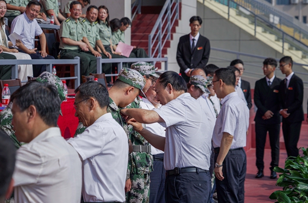 典禮上,陳軍斌副校長宣讀了《西安石油大學(xué)關(guān)于表彰2019級(jí)高國慶等225名本科新生獎(jiǎng)學(xué)金獲得者的決定》,校領(lǐng)導(dǎo)為獲獎(jiǎng)學(xué)生代表頒發(fā)了證書。同時(shí),為了增強(qiáng)學(xué)生的歸屬感和愛校榮校的意識(shí),此次開學(xué)典禮還特意舉行了新生?;张宕鲀x式,由校領(lǐng)導(dǎo)為2019級(jí)新生代表授予校徽。