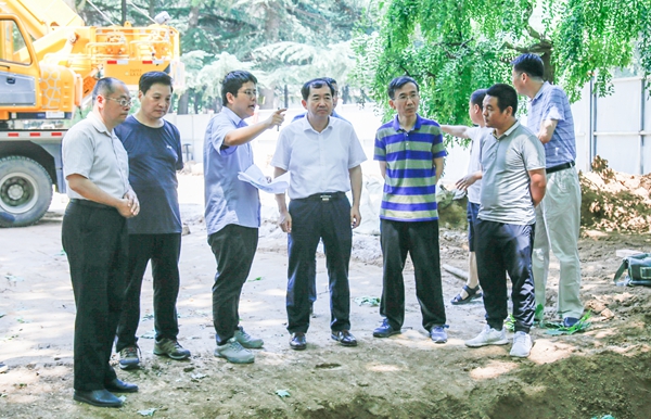 7月25日上午,校長(zhǎng)李天太、校黨委副書(shū)記張木在黨政辦公室、保衛(wèi)部(處)、基建處、后勤管理處以及施工方相關(guān)負(fù)責(zé)人的陪同下巡視檢查了雁塔校區(qū)部分區(qū)域“海綿化”改造施工進(jìn)展情況。
