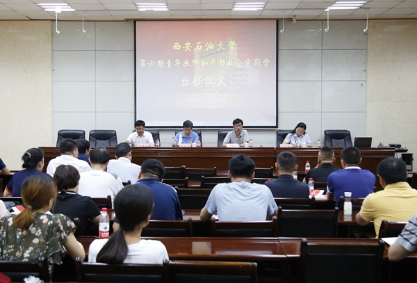 7月10日下午,我校第六期青年教師和干部社會實踐營出征儀式在雁塔校區(qū)第三會議室舉辦。副校長楊戰(zhàn)社、蘇文甫出席儀式。黨委組織部、黨委教師工作部負(fù)責(zé)人及全體參訓(xùn)學(xué)員參加了儀式。黨委教師工作部部長武曉朦主持儀式。
