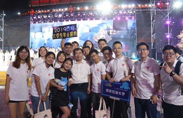 6月25日晚,由西安市委、市政府主辦的“愛(ài)上大西安 畢業(yè)不別離”2019西安大學(xué)生畢業(yè)盛典在城墻永寧門(mén)華彩綻放。西安市委副書(shū)記、市長(zhǎng)李明遠(yuǎn)出席。我校李天太校長(zhǎng)和15名畢業(yè)生代表受邀參加活動(dòng)。