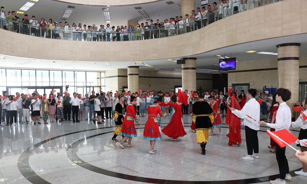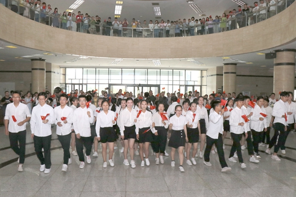 “我和我的祖國(guó),一刻也不能分割,無(wú)論我走到哪里,都流出一首贊歌……”6月14日中午,我和我的祖國(guó)系列活動(dòng)之“我愛(ài)你·中國(guó)”快閃活動(dòng)在我校鄠邑校區(qū)圖書(shū)館大廳激情上演,我校五百余名師生用青春激揚(yáng)的歌聲和優(yōu)美動(dòng)人的舞蹈慶祝新中國(guó)成立70周年,抒發(fā)愛(ài)黨愛(ài)國(guó)愛(ài)校之情,表達(dá)為祖國(guó)建功立業(yè)的信心和決心。