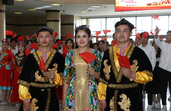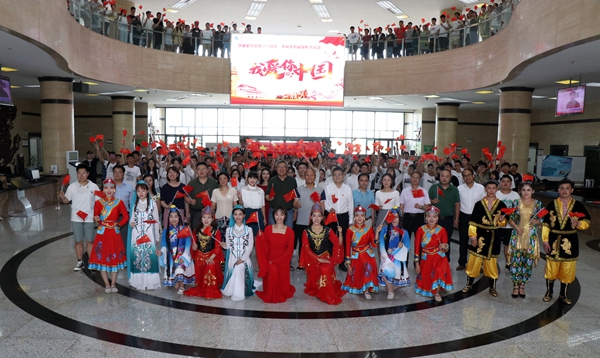 活動(dòng)結(jié)束后,大家紛紛表達(dá)對(duì)祖國(guó)的祝福和對(duì)學(xué)校發(fā)展的信心。我校學(xué)生工作干部古蘭老師和我校土木1803班麥扎提·吾拉音、電信1801班吐?tīng)柡椤ね泻咸嵬瑢W(xué)同時(shí)用維吾爾語(yǔ)和漢語(yǔ)表達(dá)了對(duì)祖國(guó)的熱愛(ài):“祝祖國(guó)繁榮富強(qiáng)!我愛(ài)你,中國(guó)!我愛(ài)你,我的祖國(guó)!”