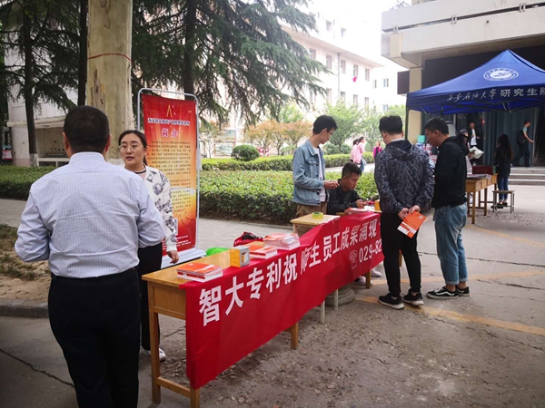 上午,學(xué)校邀請西安智大知識產(chǎn)權(quán)代理事務(wù)所和西安通大知識產(chǎn)權(quán)代理事務(wù)所在雁塔校區(qū)開展現(xiàn)場知識產(chǎn)權(quán)宣講與咨詢活動。在活動中,工作人員對前來咨詢相關(guān)法律法規(guī)及具體流程的師生進行耐心細致地講解,共發(fā)放知識產(chǎn)權(quán)法、學(xué)校知識產(chǎn)權(quán)相關(guān)政策等宣傳資料1000余份。