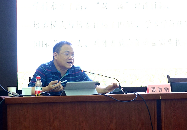 在此次培訓(xùn)會中,歐百鋼處長從研究生教育新形勢、改革研究生培養(yǎng)模式、研究生教育質(zhì)量保證與監(jiān)督體系、導(dǎo)師的重要性等四個方面,對如何加強(qiáng)導(dǎo)師隊(duì)伍建設(shè)、履行導(dǎo)師第一責(zé)任人職責(zé)作了深入分析,并對我校學(xué)位與研究生教育工作提出了中肯的意見和建議。