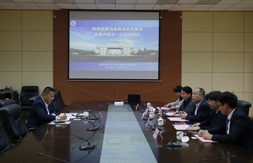 陳軍斌副校長對侯春興參贊來訪表示歡迎,并從學(xué)校概況、學(xué)科建設(shè)、國際交流等方面介紹了我校的基本情況。他談到,中馬兩國在經(jīng)貿(mào)、科技、教育和文化等領(lǐng)域交往歷史悠久,希望駐馬來西亞使館教育處能為我校與馬來西亞高校之間牽線搭橋,簽署具體的合作協(xié)議,在科學(xué)研究、互派留學(xué)生、實驗室建設(shè)等方面達成長期穩(wěn)定的合作。