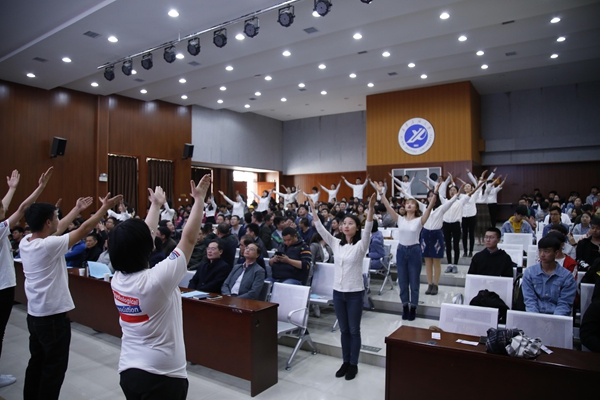 全體參會師生進行了第四屆“陽光護航”宣傳季活動宣誓。應(yīng)用心理學輔修專業(yè)同學表演了配樂詩朗誦《如果你愛我》,師生共同演繹了手語舞《讓愛傳出去》。