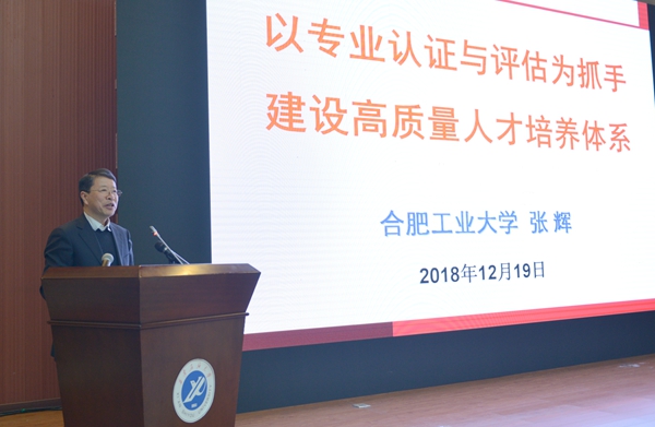 會(huì)上,教育部?jī)x器類專業(yè)教學(xué)指導(dǎo)委員會(huì)委員、合肥工業(yè)大學(xué)教授張輝作了題為《以專業(yè)認(rèn)證與評(píng)估為抓手,建設(shè)高質(zhì)量人才培養(yǎng)體系》的報(bào)告。他從“新時(shí)代教育教學(xué)改革的新要求”“專業(yè)認(rèn)證與評(píng)估的內(nèi)涵與標(biāo)準(zhǔn)”“高質(zhì)量本科人才培養(yǎng)體系構(gòu)建”三個(gè)方面展開(kāi)講解,對(duì)工程教育專業(yè)認(rèn)證的核心理念、內(nèi)在邏輯、認(rèn)證標(biāo)準(zhǔn)等方面作了詳細(xì)介紹,并對(duì)我校今后的本科人才培養(yǎng)工作提出了很多具有針對(duì)性和指導(dǎo)性的意見(jiàn)建議。