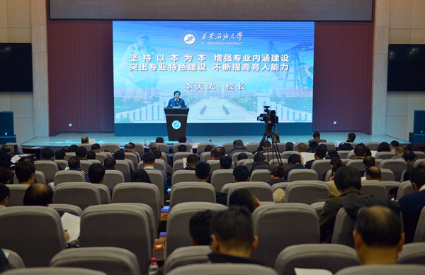 李天太校長(zhǎng)作了題為《堅(jiān)持以本為本,增強(qiáng)專業(yè)內(nèi)涵建設(shè),突出專業(yè)特色建設(shè),不斷提高育人能力》的報(bào)告。他首先從“人才培養(yǎng)體系進(jìn)一步完善”“專業(yè)內(nèi)涵建設(shè)成效顯著”“教育教學(xué)改革扎實(shí)推進(jìn)”“教學(xué)管理更加規(guī)范”“生源和人才培養(yǎng)質(zhì)量不斷提高”五個(gè)方面,對(duì)兩年來(lái)的本科教學(xué)工作進(jìn)行了回顧。