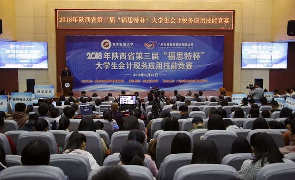 10月27日,由陜西省教育廳高等教育處主辦、西安石油大學(xué)承辦、廣州市福思特科技有限公司提供技術(shù)支持的2018年陜西省第三屆“福思特杯”大學(xué)生會(huì)計(jì)應(yīng)用技能競賽暨“貫徹黨的十九大精神,推進(jìn)財(cái)稅技能精準(zhǔn)改革”研討會(huì)在鄠邑校區(qū)舉辦。陜西省財(cái)政廳副巡視員王素文,陜西省教育廳高等教育處趙登攀,西安石油大學(xué)副校長楊戰(zhàn)社,西安交通大學(xué)管理學(xué)院會(huì)計(jì)與財(cái)務(wù)系主任田高良,陜西財(cái)經(jīng)職業(yè)技術(shù)學(xué)院副校長范忠,廣州市福思特科技有限公司董事長閆曉霞等出席比賽開幕式。我校實(shí)驗(yàn)室管理處處長孟開元主持開幕式。