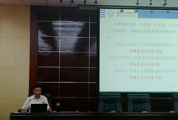 陜西省師德標(biāo)兵、西安電子科技大學(xué)千博教授作了題為《新時代下高校教師師德培養(yǎng)》的講座。他講到,新時代下師德的內(nèi)涵應(yīng)包含:第一是愛心,熱愛是最好的老師,愛學(xué)生才有對學(xué)生的關(guān)心;第二是事業(yè)心,把教書育人作為事業(yè)終身追求,嚴格自律,不斷摸索提升,才有上進心;第三是責(zé)任心,時刻牢記自己的責(zé)任,對學(xué)生、對學(xué)校、對社會、對家庭,要積極擔(dān)當(dāng),才會時時處處用心;第四是謙卑心,總是看到別人的長處、看到自己的短處,嚴格要求自己,努力學(xué)習(xí),勤于積累,才會虛心;第五是進取心,教學(xué)科研結(jié)合,豐富知識積累,創(chuàng)新培養(yǎng)方式,才能不斷滿足干事業(yè)的進取心。