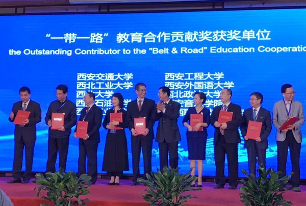開幕式由陜西省教育廳副廳長趙昶葆主持,省教育廳廳長王建利作主旨發(fā)言。陜西省政府副秘書長高陽宣布2018絲綢之路教育合作交流會開幕。大會為10個機構和9位外籍人士頒發(fā)了“一帶一路”教育合作貢獻獎,我校及我校俄語外教揚古托娃?麗達?洛別爾托夫娜雙雙獲獎。
