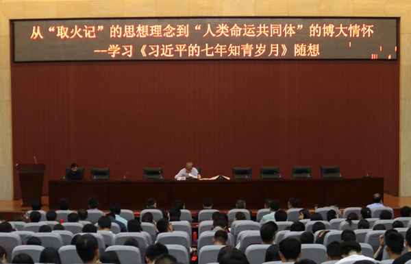 5月3日下午,學(xué)校邀請(qǐng)陜西省作家協(xié)會(huì)主席團(tuán)顧問(wèn)曹谷溪先生來(lái)校作了題為《從“取火記”的思想理念到“人類命運(yùn)共同體”的博大情懷——學(xué)習(xí)< 習(xí)近平的七年知青歲月>隨想》的專題報(bào)告。全體學(xué)工干部和學(xué)生代表400余人聆聽(tīng)了報(bào)告。