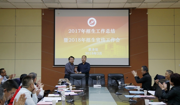會上,教務(wù)處處長徐學(xué)利宣讀了中共教育部黨組《關(guān)于加強課堂教學(xué)建設(shè)提高教學(xué)質(zhì)量指導(dǎo)意見》,傳達了陜西省高校教學(xué)工作會議精神;對2017年招生工作的基本情況及存在問題進行了總結(jié),并對2018年招生宣傳相關(guān)工作進行了安排。