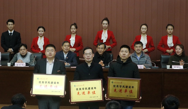 12月29日下午,我校2017年學(xué)風(fēng)建設(shè)總結(jié)表彰大會(huì)在鄠邑校區(qū)弘石學(xué)術(shù)報(bào)告廳召開(kāi)。校黨委副書記張木出席大會(huì)。學(xué)生工作部、團(tuán)委、教務(wù)處、鄠邑校區(qū)管理辦公室負(fù)責(zé)人,各院(系)主管學(xué)生工作負(fù)責(zé)人,全體學(xué)生工作干部,學(xué)生代表共400余人參加了大會(huì)。