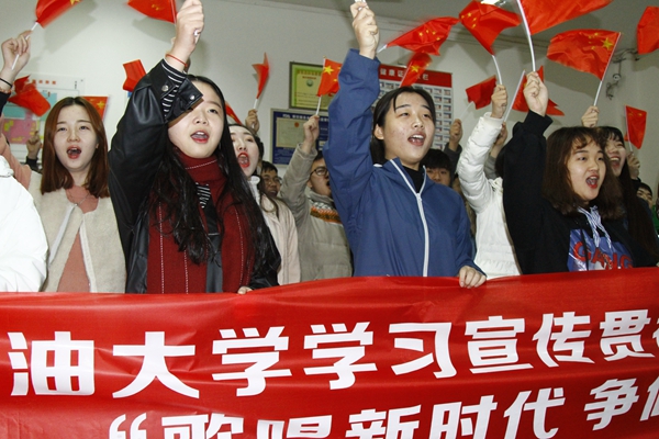 [學(xué)習(xí)黨的十九大精神]紅歌回蕩西安石油大學(xué) 中外學(xué)生快閃歌唱新時(shí)代