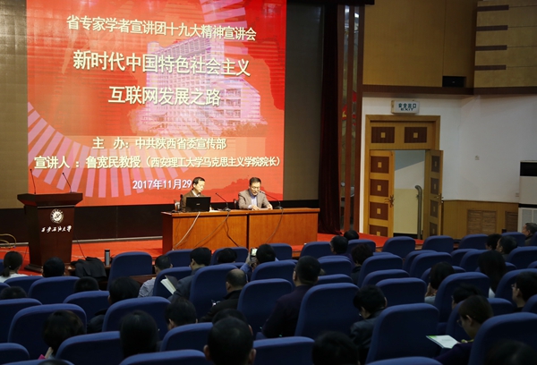11月29日下午,我校在雁塔校區(qū)學(xué)術(shù)報(bào)告廳舉辦了省專家學(xué)者宣講團(tuán)黨的十九大精神宣講會(huì)。省專家學(xué)者宣講團(tuán)成員、西安理工大學(xué)馬克思主義學(xué)院院長(zhǎng)魯寬民教授擔(dān)任主講。校黨委理論中心組成員、全校處科級(jí)干部、教工黨支部書記、馬克思主義學(xué)院教師、大學(xué)生思想政治輔導(dǎo)員參加宣講會(huì)。校黨委副書記雷西合主持會(huì)議。