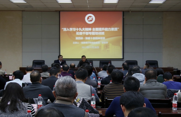 11月28日下午,我校“深入學(xué)習(xí)黨的十九大精神,全面提升能力素質(zhì)”處級(jí)干部專題培訓(xùn)班第四講在雁塔校區(qū)會(huì)議中心第三會(huì)議室舉辦。省教育廳科技處處長(zhǎng)甘世平應(yīng)邀來(lái)校作報(bào)告,副校長(zhǎng)李天太主持報(bào)告會(huì),全校處級(jí)干部參加報(bào)告會(huì)。